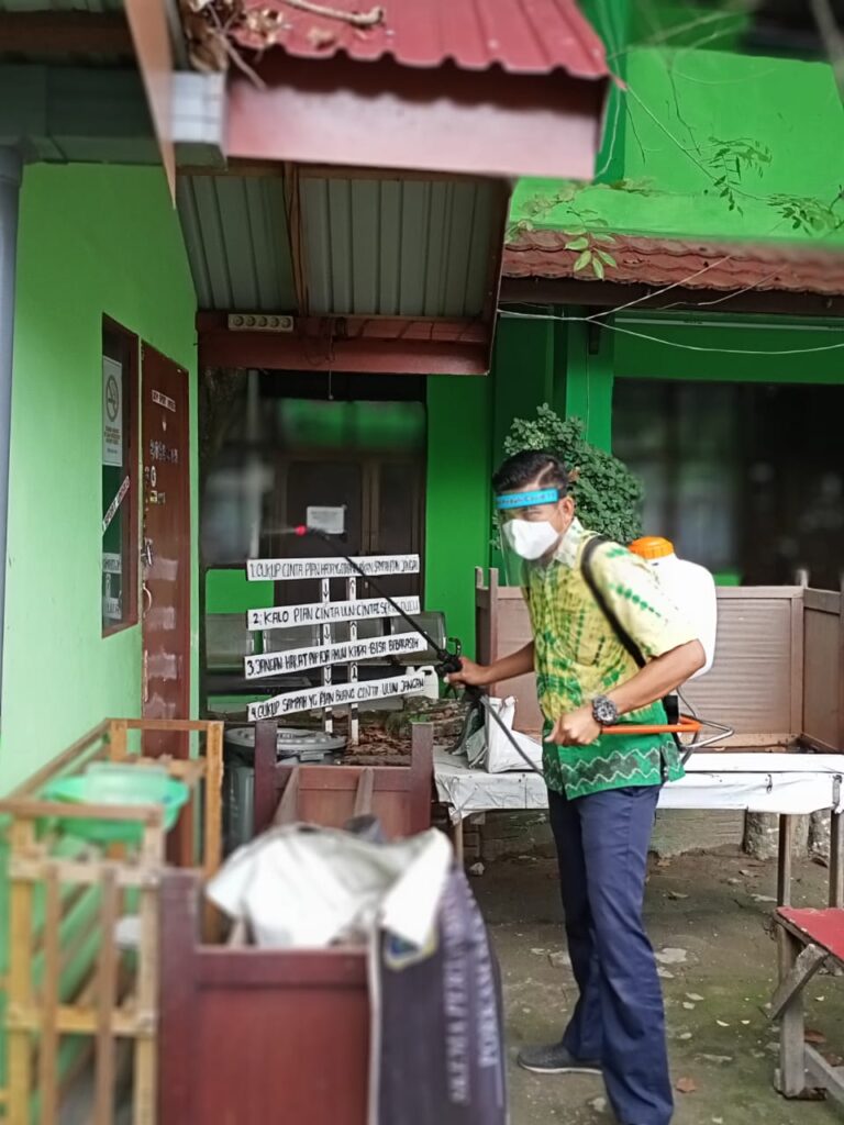 Selain melakukan penyemprotan, upaya yang dilakukan dalam rangka mitigasi penyebaran virus dengan pengalihan perkuliahan ke sistem daring dan membatasi kegiatan akademik di wilayah kampus.(lie/Red-Wan/SKD)